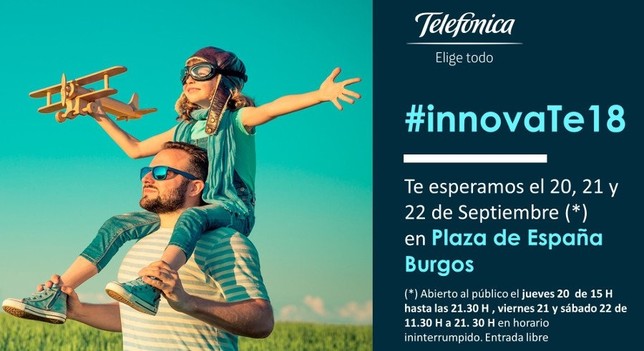 Burgos acogerá durante los próximos tres días (20, 21 y 22 de septiembre) la exposición ‘InnovaTe’, un espacio en el que Telefónica presentará los últimos avances en tecnologías de la información y comunicación, especialmente los relacionados con inteligencia artificial y realidad virtual. La exposición gratuita estará ubicada en plaza de España y será inaugurada mañana jueves por el alcalde de Burgos, Javier Lacalle. Permanecerá abierta al público el jueves 20, de 15 a 21.30 horas, y viernes y sábado de 11.30 a 21.30 horas, ininterrumpidamente.